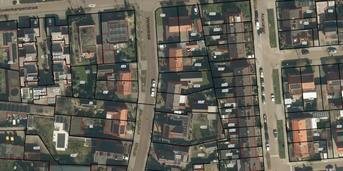 Het perceel waarop Vensestraat 25 staat heeft een oppervlakte van 375 m². Dit is een groot perceel. De perceeloppervlakte wordt geregistreerd door het Kadaster. Gedetailleerde informatie over de maten van dit perceel kunt u vinden in het rapport Kadastrale kaart met maatvoering van Vensestraat 25.