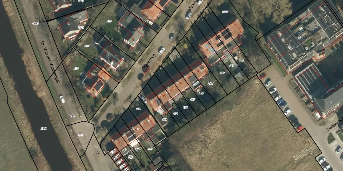 Gebruik de zoekbalk of klik op een perceel voor informatie over de adressen binnen dit perceel.