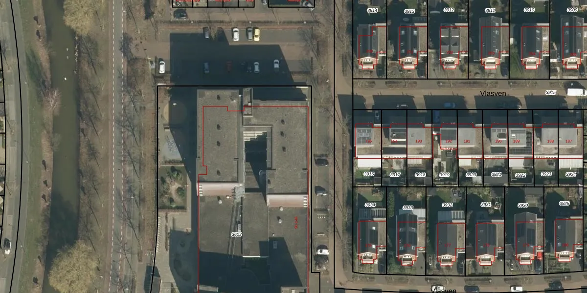 Het perceel waarop Vlasven 138 staat heeft een oppervlakte van 5288 m². Dit is een zeer groot perceel. De perceeloppervlakte wordt geregistreerd door het Kadaster. Gedetailleerde informatie over de maten van dit perceel kunt u vinden in het rapport Kadastrale kaart met maatvoering van Vlasven 138.