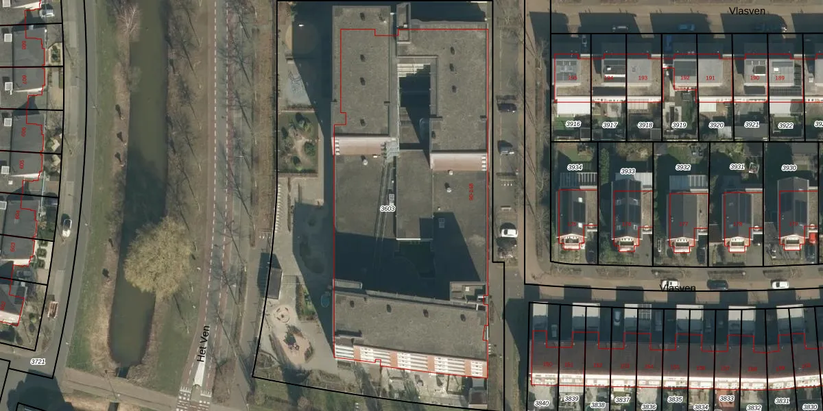Vlasven 95 is gelegen op kadastraal perceel VHL00L3603. Deze kadastrale aanduiding is uniek en wordt gebruikt door het Kadaster om eigendomsrechten en andere zakelijke rechten vast te leggen. Het perceel maakt onderdeel uit van de kadastrale gemeente Veghel.