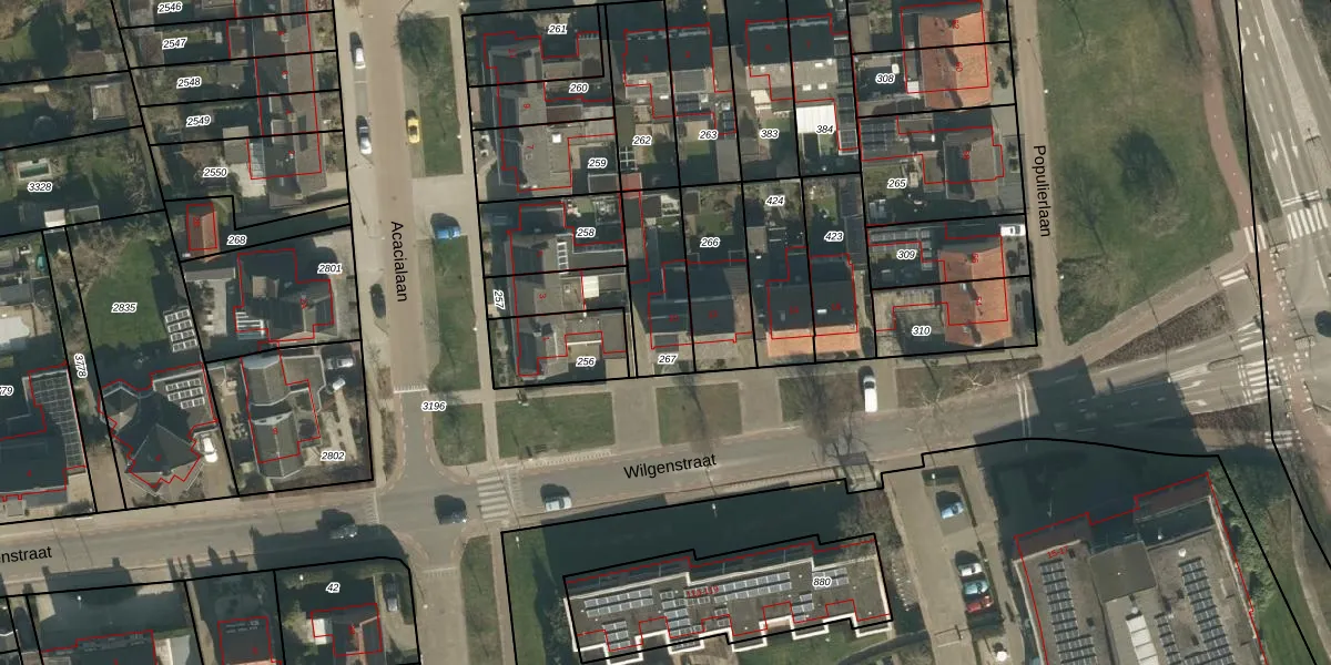 Gebruik de zoekbalk of klik op een perceel voor informatie over de adressen binnen dit perceel.