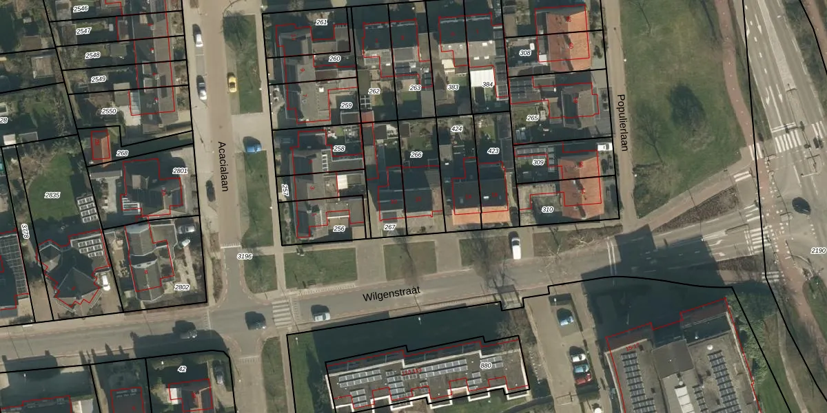 Het perceel waarop Wilgenstraat 12 staat heeft een oppervlakte van 257 m². Dit is een middelgroot perceel. De perceeloppervlakte wordt geregistreerd door het Kadaster. Gedetailleerde informatie over de maten van dit perceel kunt u vinden in het rapport Kadastrale kaart met maatvoering van Wilgenstraat 12.