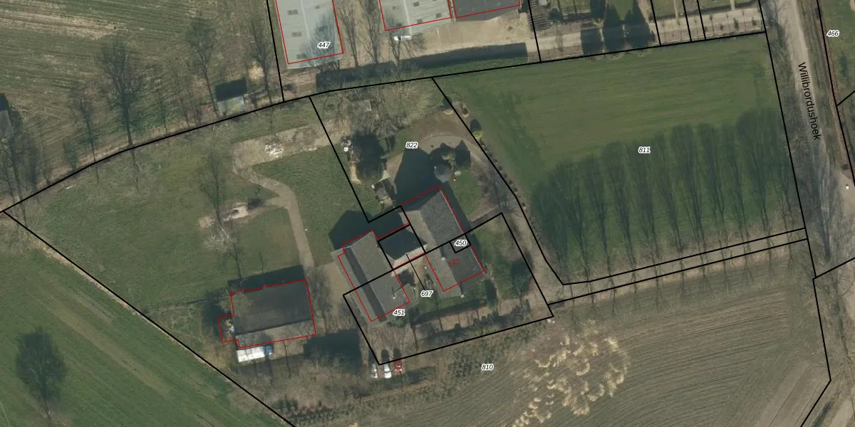 Willibrordushoek 2-A is gelegen op kadastraal perceel VHL00R822. Deze kadastrale aanduiding is uniek en wordt gebruikt door het Kadaster om eigendomsrechten en andere zakelijke rechten vast te leggen. Het perceel maakt onderdeel uit van de kadastrale gemeente Veghel.