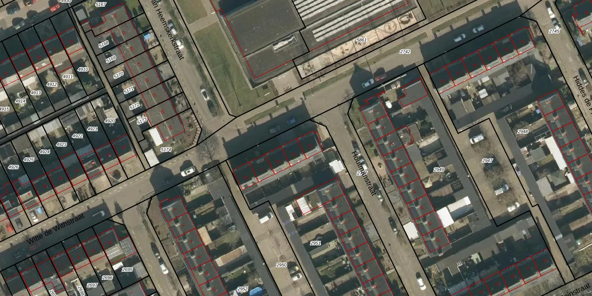 Het perceel waarop Witte de Withstraat 21 staat heeft een oppervlakte van 2600 m². Dit is een zeer groot perceel. De perceeloppervlakte wordt geregistreerd door het Kadaster. Gedetailleerde informatie over de maten van dit perceel kunt u vinden in het rapport Kadastrale kaart met maatvoering van Witte de Withstraat 21.