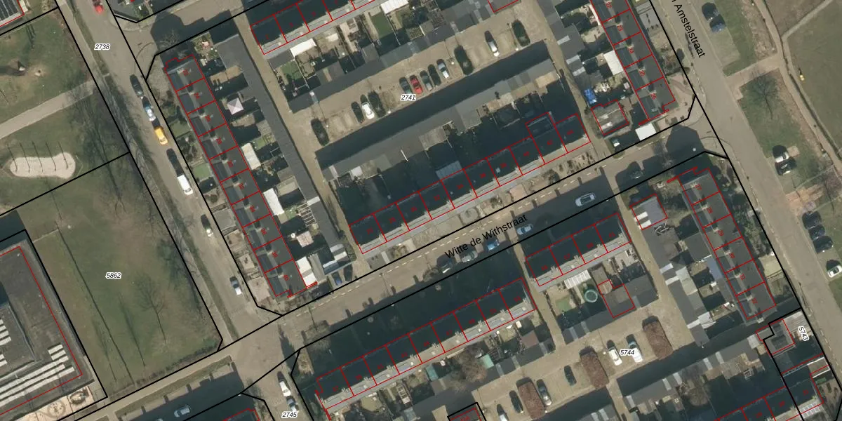 Het perceel waarop Witte de Withstraat 30 staat heeft een oppervlakte van 7960 m². Dit is een zeer groot perceel. De perceeloppervlakte wordt geregistreerd door het Kadaster. Gedetailleerde informatie over de maten van dit perceel kunt u vinden in het rapport Kadastrale kaart met maatvoering van Witte de Withstraat 30.