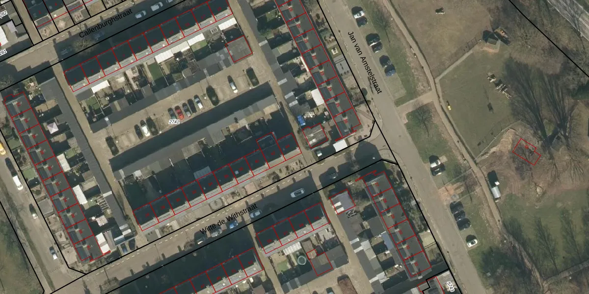 Het perceel waarop Witte de Withstraat 44 staat heeft een oppervlakte van 7960 m². Dit is een zeer groot perceel. De perceeloppervlakte wordt geregistreerd door het Kadaster. Gedetailleerde informatie over de maten van dit perceel kunt u vinden in het rapport Kadastrale kaart met maatvoering van Witte de Withstraat 44.