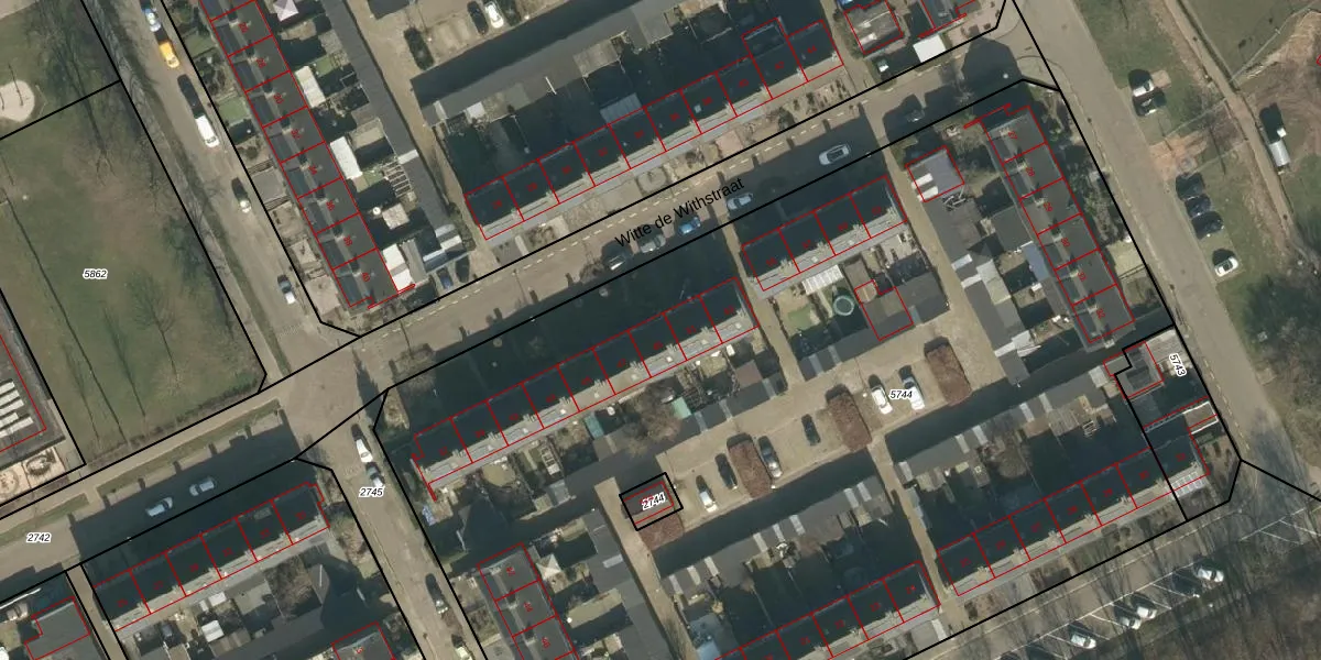 Het perceel waarop Witte de Withstraat 49 staat heeft een oppervlakte van 7855 m². Dit is een zeer groot perceel. De perceeloppervlakte wordt geregistreerd door het Kadaster. Gedetailleerde informatie over de maten van dit perceel kunt u vinden in het rapport Kadastrale kaart met maatvoering van Witte de Withstraat 49.