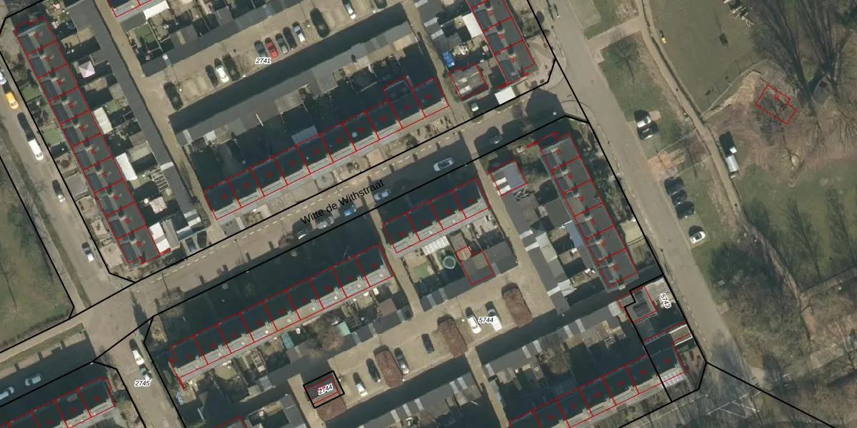 Het perceel waarop Witte de Withstraat 57 staat heeft een oppervlakte van 7855 m². Dit is een zeer groot perceel. De perceeloppervlakte wordt geregistreerd door het Kadaster. Gedetailleerde informatie over de maten van dit perceel kunt u vinden in het rapport Kadastrale kaart met maatvoering van Witte de Withstraat 57.