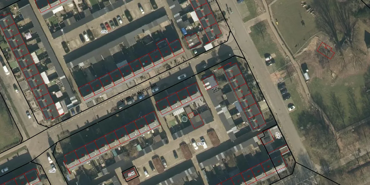 Het perceel waarop Witte de Withstraat 59 staat heeft een oppervlakte van 7855 m². Dit is een zeer groot perceel. De perceeloppervlakte wordt geregistreerd door het Kadaster. Gedetailleerde informatie over de maten van dit perceel kunt u vinden in het rapport Kadastrale kaart met maatvoering van Witte de Withstraat 59.