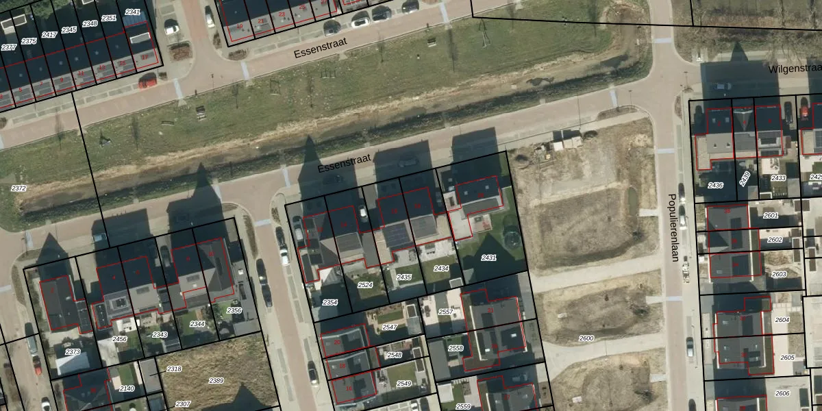 Essenstraat 18 is gelegen op kadastraal perceel MDL01M2434. Deze kadastrale aanduiding is uniek en wordt gebruikt door het Kadaster om eigendomsrechten en andere zakelijke rechten vast te leggen. Het perceel maakt onderdeel uit van de kadastrale gemeente Maasdriel.
