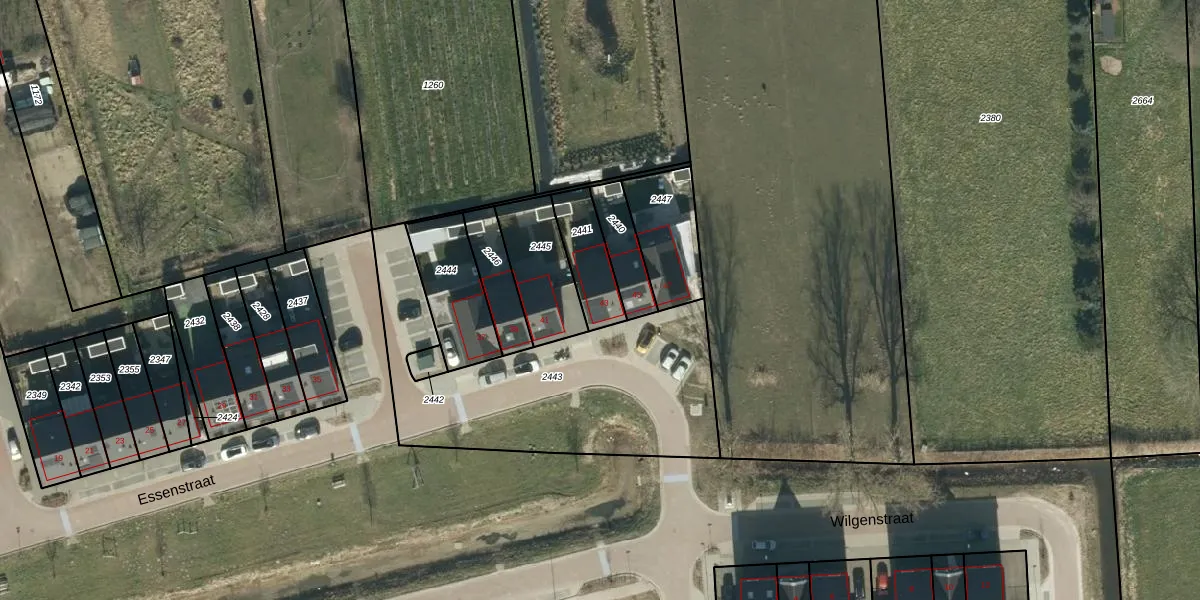Essenstraat 43 is gelegen op kadastraal perceel MDL01M2441. Deze kadastrale aanduiding is uniek en wordt gebruikt door het Kadaster om eigendomsrechten en andere zakelijke rechten vast te leggen. Het perceel maakt onderdeel uit van de kadastrale gemeente Maasdriel.