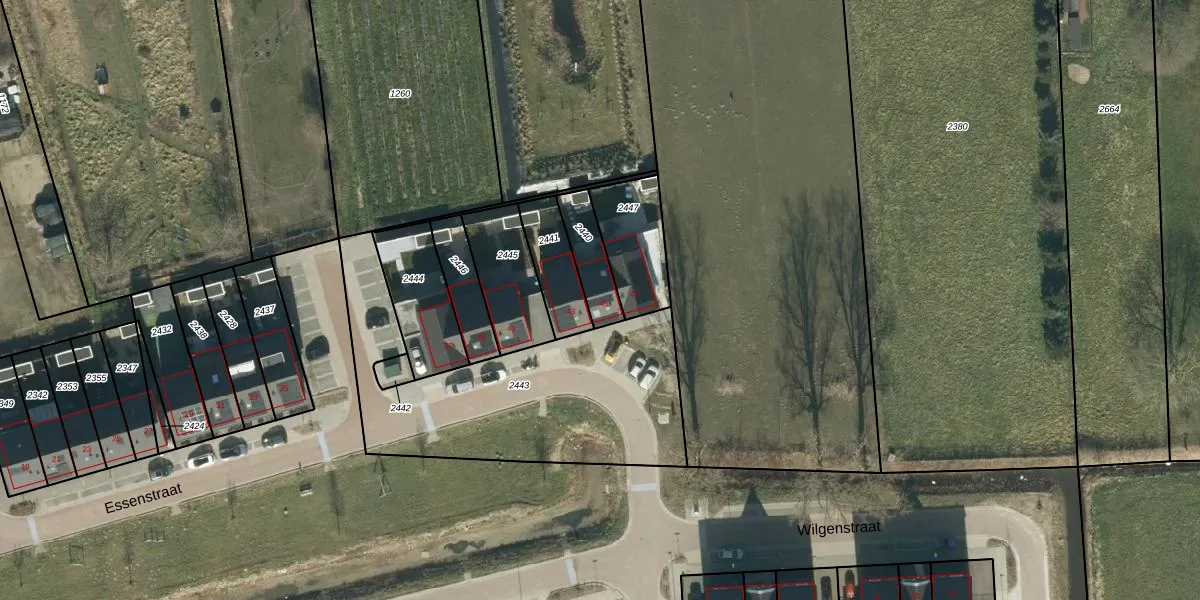 Essenstraat 45 is gelegen op kadastraal perceel MDL01M2440. Deze kadastrale aanduiding is uniek en wordt gebruikt door het Kadaster om eigendomsrechten en andere zakelijke rechten vast te leggen. Het perceel maakt onderdeel uit van de kadastrale gemeente Maasdriel.