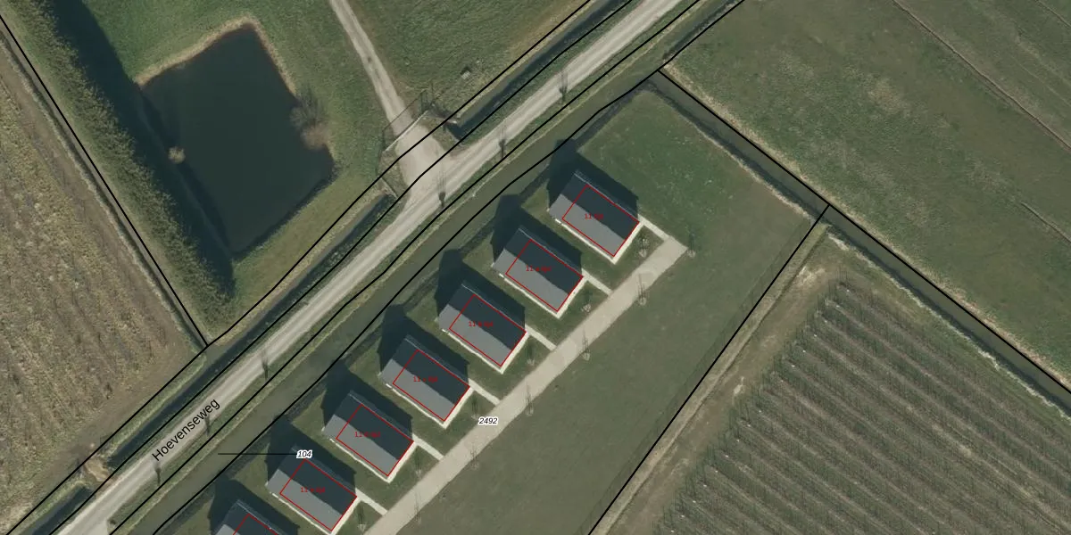 Het perceel waarop Hoevenseweg 11-a-tijd staat heeft een oppervlakte van 7165 m². Dit is een zeer groot perceel. De perceeloppervlakte wordt geregistreerd door het Kadaster. Gedetailleerde informatie over de maten van dit perceel kunt u vinden in het rapport Kadastrale kaart met maatvoering van Hoevenseweg 11-a-tijd.