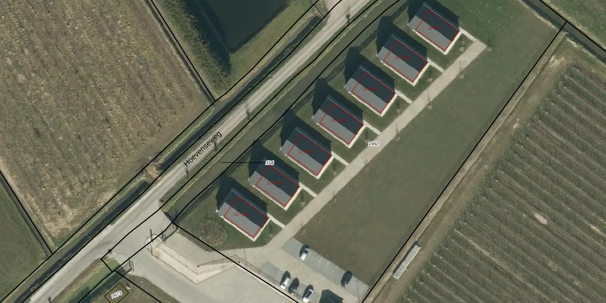 Het perceel waarop Hoevenseweg 11-d-tijd staat heeft een oppervlakte van 7165 m². Dit is een zeer groot perceel. De perceeloppervlakte wordt geregistreerd door het Kadaster. Gedetailleerde informatie over de maten van dit perceel kunt u vinden in het rapport Kadastrale kaart met maatvoering van Hoevenseweg 11-d-tijd.