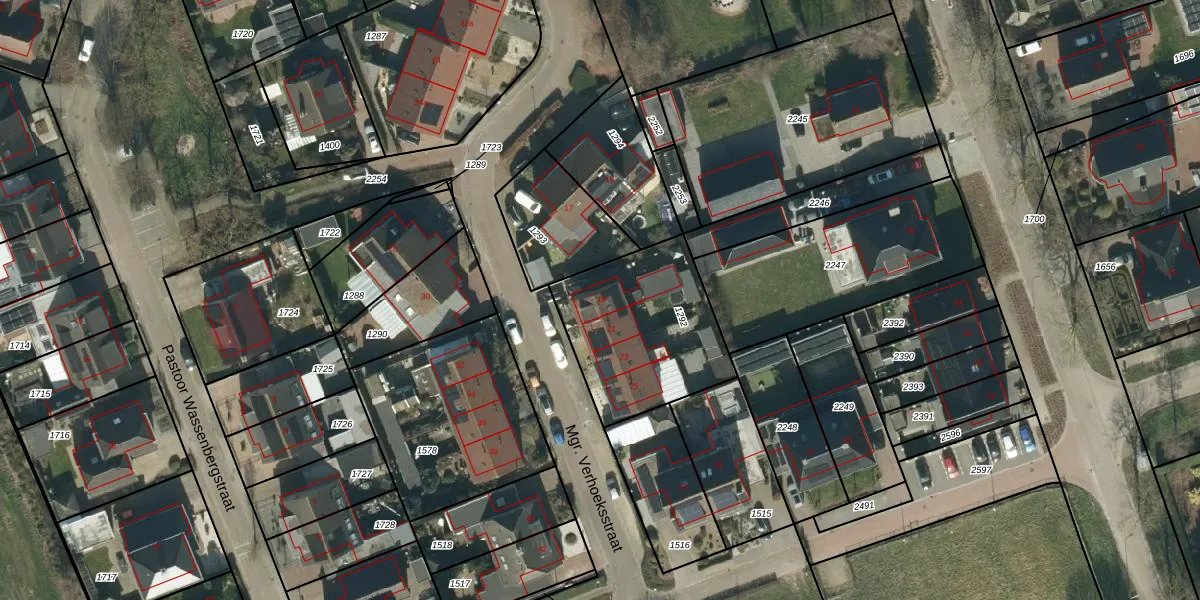 Mgr. Verhoeksstraat 19 is gelegen op kadastraal perceel MDL01M1292. Deze kadastrale aanduiding is uniek en wordt gebruikt door het Kadaster om eigendomsrechten en andere zakelijke rechten vast te leggen. Het perceel maakt onderdeel uit van de kadastrale gemeente Maasdriel.