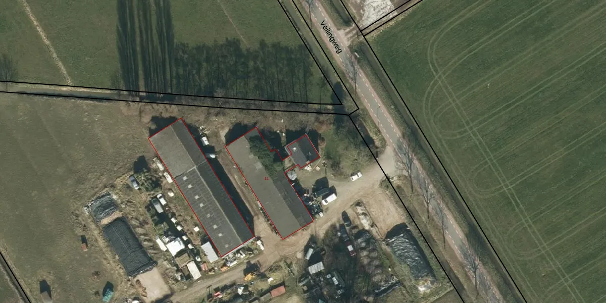 Het perceel waarop Veilingweg 11 staat heeft een oppervlakte van 4,2 ha. Dit is een zeer groot perceel. De perceeloppervlakte wordt geregistreerd door het Kadaster. Gedetailleerde informatie over de maten van dit perceel kunt u vinden in het rapport Kadastrale kaart met maatvoering van Veilingweg 11.