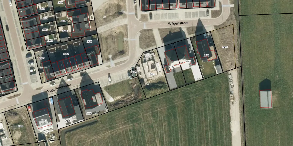 Gebruik de zoekbalk of klik op een perceel voor informatie over de adressen binnen dit perceel.