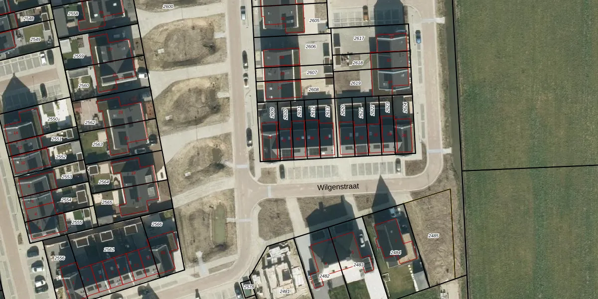 Wilgenstraat 40 is gelegen op kadastraal perceel MDL01M2611. Deze kadastrale aanduiding is uniek en wordt gebruikt door het Kadaster om eigendomsrechten en andere zakelijke rechten vast te leggen. Het perceel maakt onderdeel uit van de kadastrale gemeente Maasdriel.