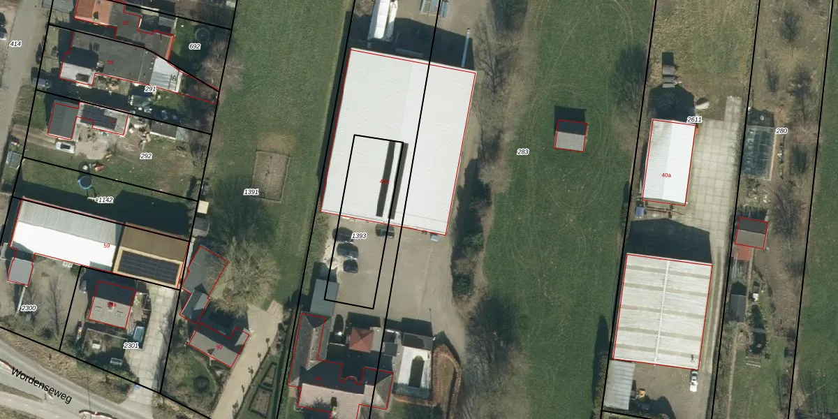 Het perceel waarop Wordenseweg 48-a staat heeft een oppervlakte van 1,4 ha. Dit is een zeer groot perceel. De perceeloppervlakte wordt geregistreerd door het Kadaster. Gedetailleerde informatie over de maten van dit perceel kunt u vinden in het rapport Kadastrale kaart met maatvoering van Wordenseweg 48-a.