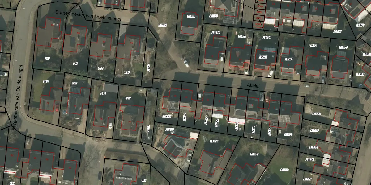 Het perceel waarop Akelei 13 staat heeft een oppervlakte van 216 m². Dit is een middelgroot perceel. De perceeloppervlakte wordt geregistreerd door het Kadaster. Gedetailleerde informatie over de maten van dit perceel kunt u vinden in het rapport Kadastrale kaart met maatvoering van Akelei 13.