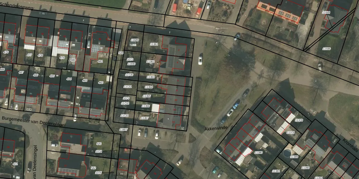 Gebruik de zoekbalk of klik op een perceel voor informatie over de adressen binnen dit perceel.