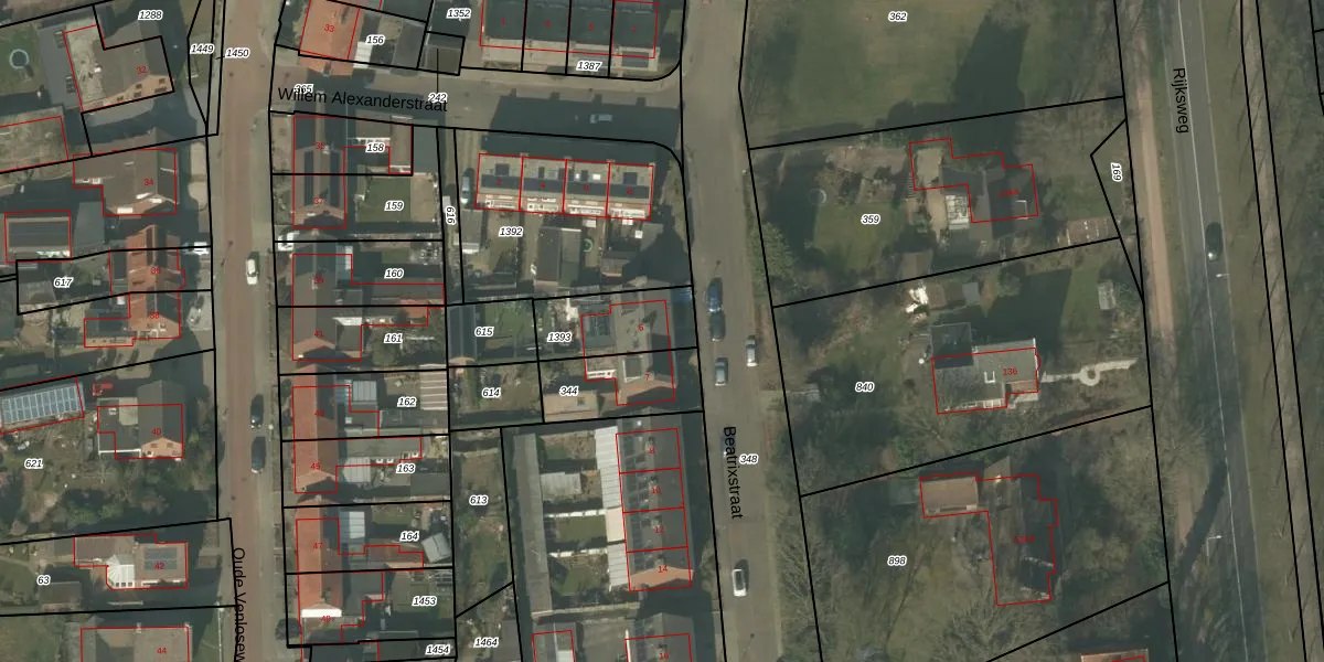 Gebruik de zoekbalk of klik op een perceel voor informatie over de adressen binnen dit perceel.