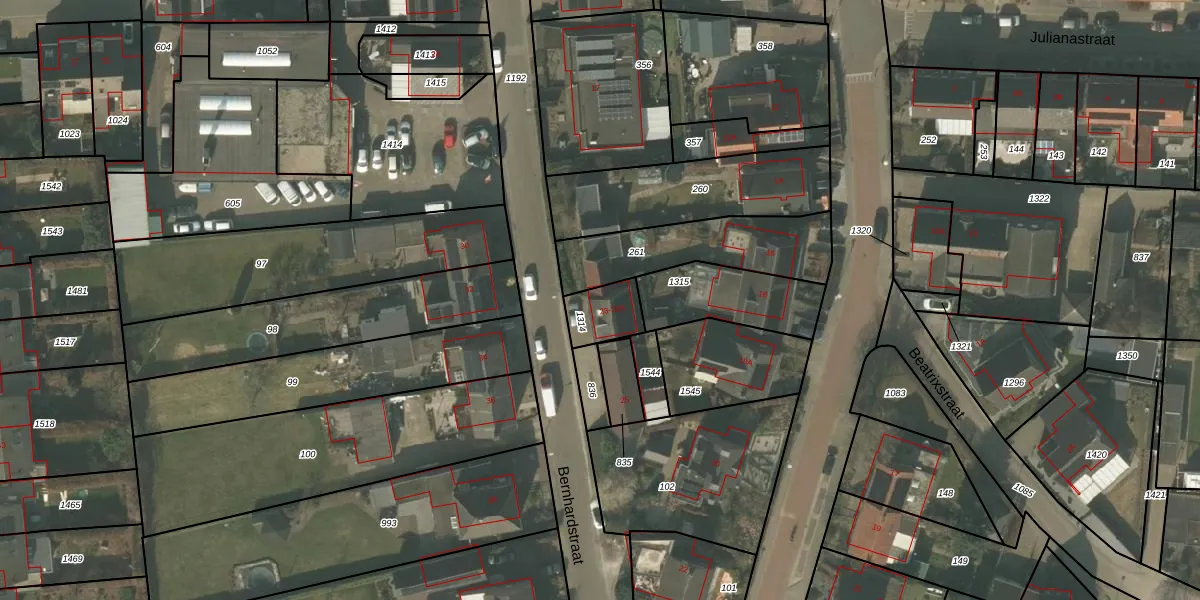 Bernhardstraat 23 is gelegen op kadastraal perceel ACN00E1314. Deze kadastrale aanduiding is uniek en wordt gebruikt door het Kadaster om eigendomsrechten en andere zakelijke rechten vast te leggen. Het perceel maakt onderdeel uit van de kadastrale gemeente Arcen en Velden.
