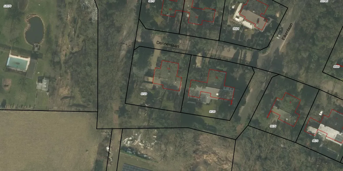 Het perceel waarop Dennenlaan 13 staat heeft een oppervlakte van 1185 m². Dit is een zeer groot perceel. De perceeloppervlakte wordt geregistreerd door het Kadaster. Gedetailleerde informatie over de maten van dit perceel kunt u vinden in het rapport Kadastrale kaart met maatvoering van Dennenlaan 13.