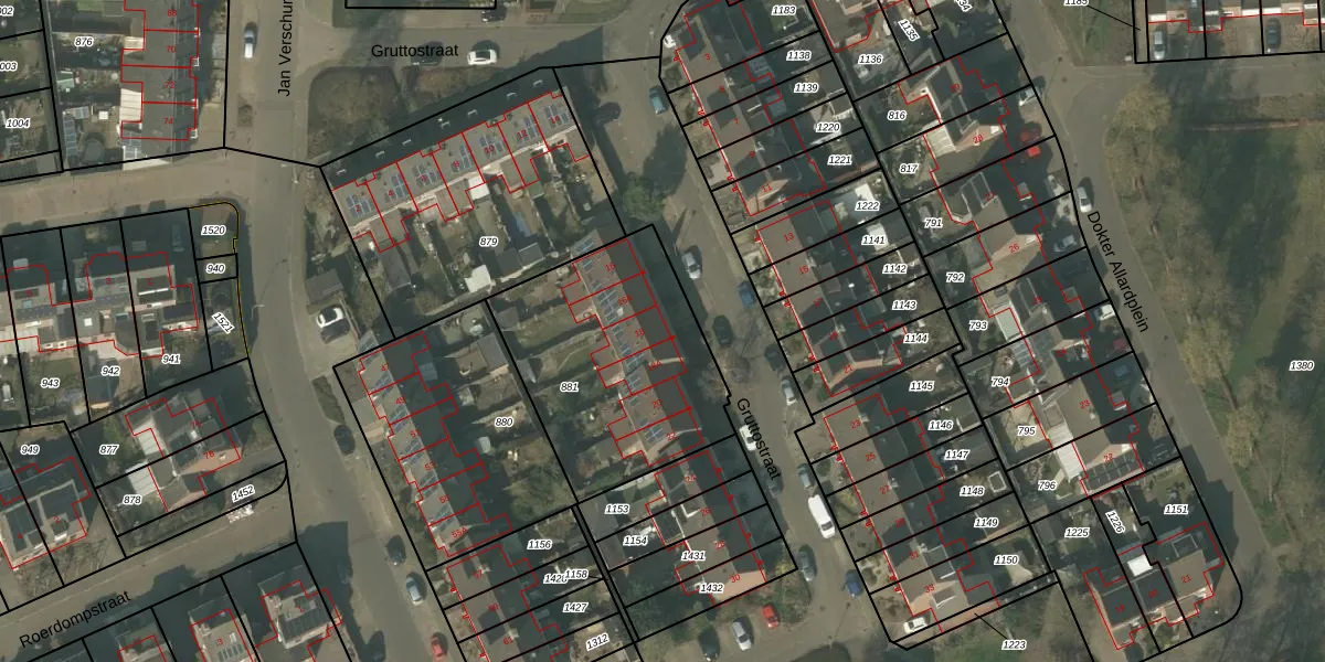 Het perceel waarop Gruttostraat 18 staat heeft een oppervlakte van 930 m². Dit is een groot perceel. De perceeloppervlakte wordt geregistreerd door het Kadaster. Gedetailleerde informatie over de maten van dit perceel kunt u vinden in het rapport Kadastrale kaart met maatvoering van Gruttostraat 18.