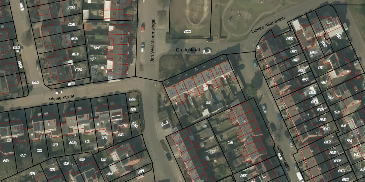 Het perceel waarop Gruttostraat 4 staat heeft een oppervlakte van 1087 m². Dit is een zeer groot perceel. De perceeloppervlakte wordt geregistreerd door het Kadaster. Gedetailleerde informatie over de maten van dit perceel kunt u vinden in het rapport Kadastrale kaart met maatvoering van Gruttostraat 4.