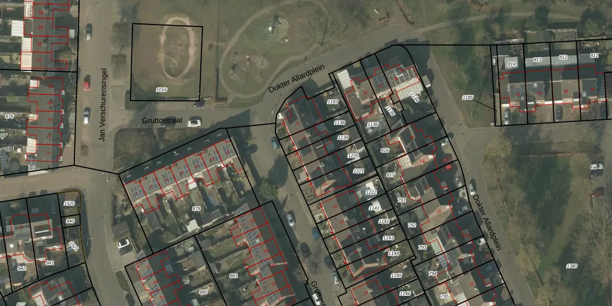 Het perceel waarop Gruttostraat 7 staat heeft een oppervlakte van 135 m². Dit is een middelgroot perceel. De perceeloppervlakte wordt geregistreerd door het Kadaster. Gedetailleerde informatie over de maten van dit perceel kunt u vinden in het rapport Kadastrale kaart met maatvoering van Gruttostraat 7.