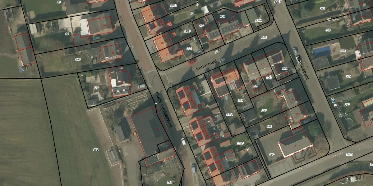 Irenestraat 2 is gelegen op kadastraal perceel ACN00E1355. Deze kadastrale aanduiding is uniek en wordt gebruikt door het Kadaster om eigendomsrechten en andere zakelijke rechten vast te leggen. Het perceel maakt onderdeel uit van de kadastrale gemeente Arcen en Velden.