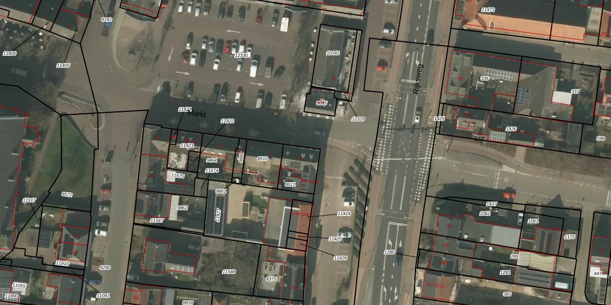 Het perceel waarop Markt 16 staat heeft een oppervlakte van 180 m². Dit is een middelgroot perceel. De perceeloppervlakte wordt geregistreerd door het Kadaster. Gedetailleerde informatie over de maten van dit perceel kunt u vinden in het rapport Kadastrale kaart met maatvoering van Markt 16.