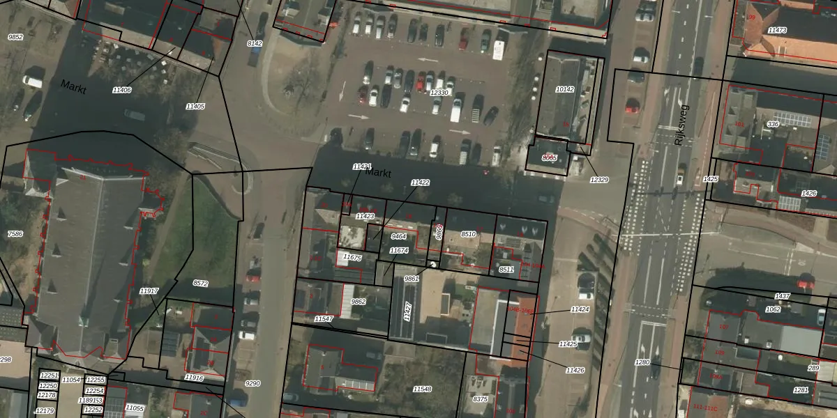 Het perceel waarop Markt 18 staat heeft een oppervlakte van 173 m². Dit is een middelgroot perceel. De perceeloppervlakte wordt geregistreerd door het Kadaster. Gedetailleerde informatie over de maten van dit perceel kunt u vinden in het rapport Kadastrale kaart met maatvoering van Markt 18.