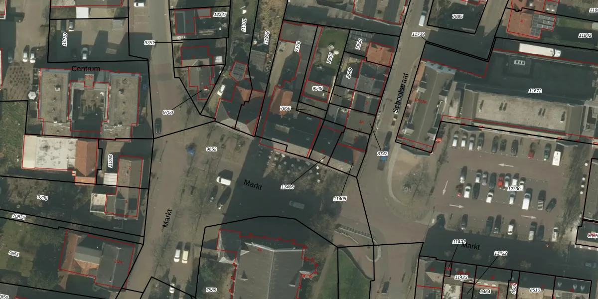 Het perceel waarop Markt 7 staat heeft een oppervlakte van 640 m². Dit is een groot perceel. De perceeloppervlakte wordt geregistreerd door het Kadaster. Gedetailleerde informatie over de maten van dit perceel kunt u vinden in het rapport Kadastrale kaart met maatvoering van Markt 7.
