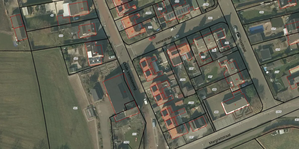 Het perceel waarop Oude Venloseweg 89 staat heeft een oppervlakte van 1321 m². Dit is een zeer groot perceel. De perceeloppervlakte wordt geregistreerd door het Kadaster. Gedetailleerde informatie over de maten van dit perceel kunt u vinden in het rapport Kadastrale kaart met maatvoering van Oude Venloseweg 89.