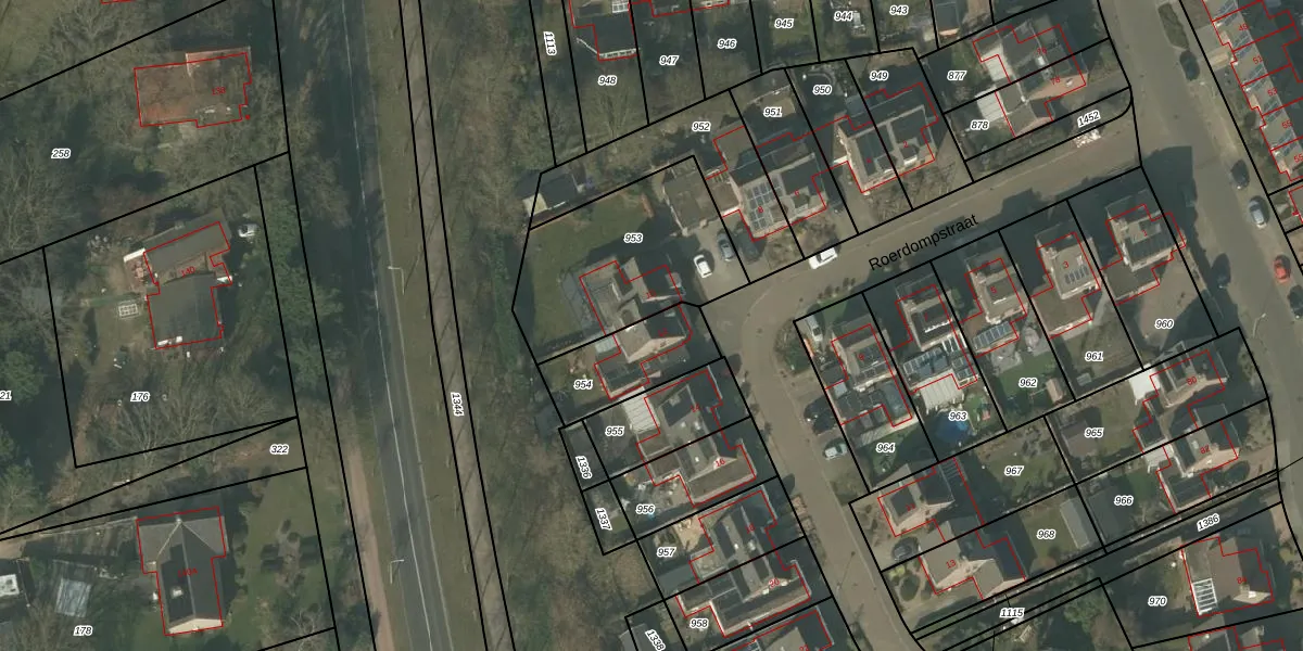 Roerdompstraat 12 is gelegen op kadastraal perceel ACN00E954. Deze kadastrale aanduiding is uniek en wordt gebruikt door het Kadaster om eigendomsrechten en andere zakelijke rechten vast te leggen. Het perceel maakt onderdeel uit van de kadastrale gemeente Arcen en Velden.