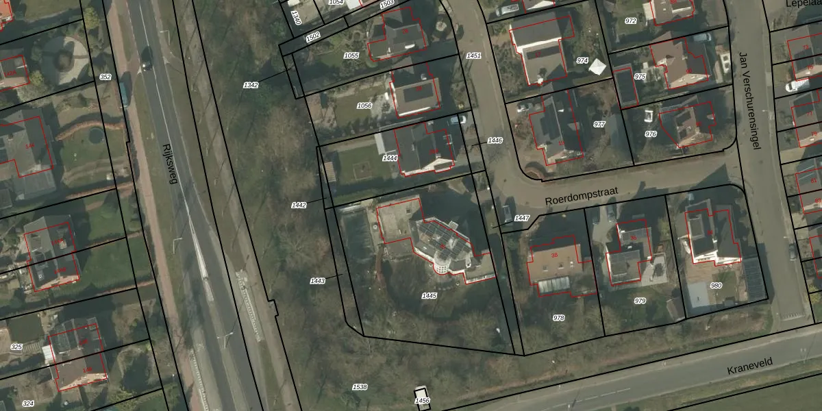 Het perceel waarop Roerdompstraat 30 staat heeft een oppervlakte van 1344 m². Dit is een zeer groot perceel. De perceeloppervlakte wordt geregistreerd door het Kadaster. Gedetailleerde informatie over de maten van dit perceel kunt u vinden in het rapport Kadastrale kaart met maatvoering van Roerdompstraat 30.