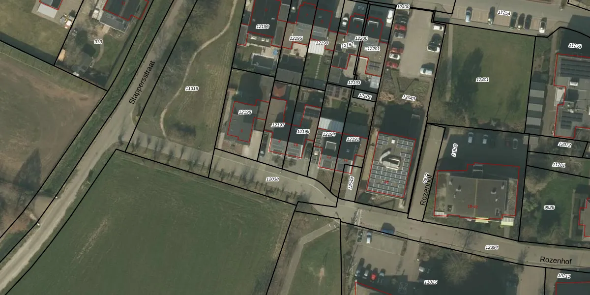 Gebruik de zoekbalk of klik op een perceel voor informatie over de adressen binnen dit perceel.