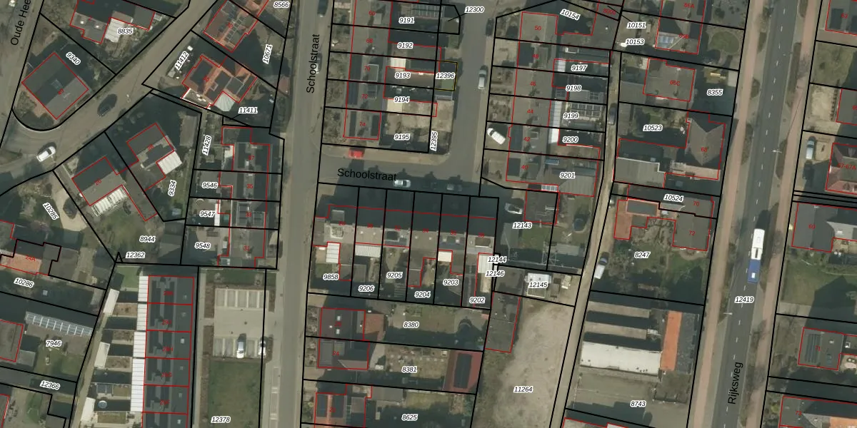Schoolstraat 34 is gelegen op kadastraal perceel ACN00C9204. Deze kadastrale aanduiding is uniek en wordt gebruikt door het Kadaster om eigendomsrechten en andere zakelijke rechten vast te leggen. Het perceel maakt onderdeel uit van de kadastrale gemeente Arcen en Velden.