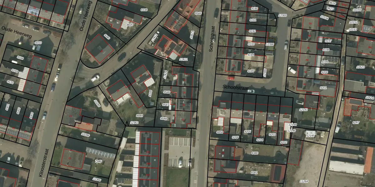 Gebruik de zoekbalk of klik op een perceel voor informatie over de adressen binnen dit perceel.