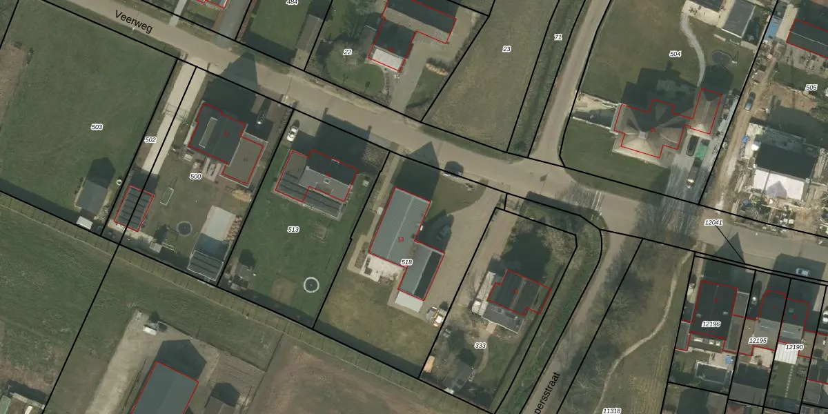 Veerweg 13 is gelegen op kadastraal perceel ACN00H518. Deze kadastrale aanduiding is uniek en wordt gebruikt door het Kadaster om eigendomsrechten en andere zakelijke rechten vast te leggen. Het perceel maakt onderdeel uit van de kadastrale gemeente Arcen en Velden.