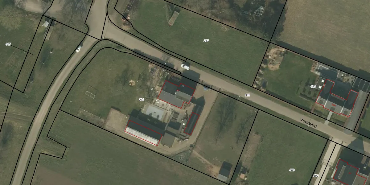 Veerweg 21 is gelegen op kadastraal perceel ACN00H281. Deze kadastrale aanduiding is uniek en wordt gebruikt door het Kadaster om eigendomsrechten en andere zakelijke rechten vast te leggen. Het perceel maakt onderdeel uit van de kadastrale gemeente Arcen en Velden.