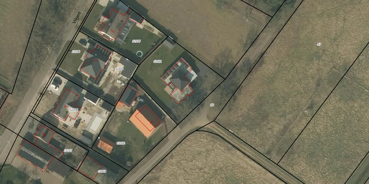 Vilgert 41-E is gelegen op kadastraal perceel ACN00C12101. Deze kadastrale aanduiding is uniek en wordt gebruikt door het Kadaster om eigendomsrechten en andere zakelijke rechten vast te leggen. Het perceel maakt onderdeel uit van de kadastrale gemeente Arcen en Velden.