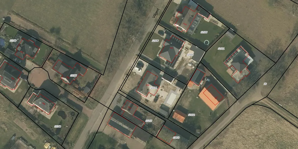 Vilgert 41-B is gelegen op kadastraal perceel ACN00C12104. Deze kadastrale aanduiding is uniek en wordt gebruikt door het Kadaster om eigendomsrechten en andere zakelijke rechten vast te leggen. Het perceel maakt onderdeel uit van de kadastrale gemeente Arcen en Velden.
