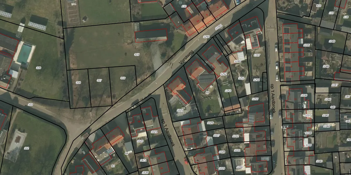 Vorstweg 9 is gelegen op kadastraal perceel ACN00E1025. Deze kadastrale aanduiding is uniek en wordt gebruikt door het Kadaster om eigendomsrechten en andere zakelijke rechten vast te leggen. Het perceel maakt onderdeel uit van de kadastrale gemeente Arcen en Velden.