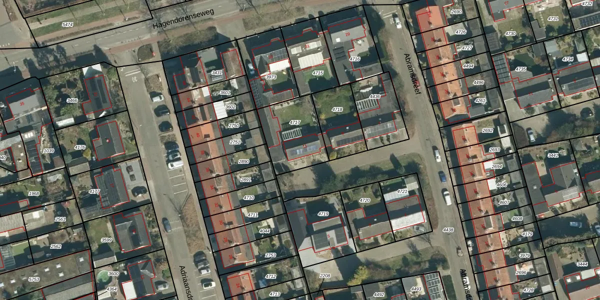 Het perceel waarop het adres ligt is VHV01-D-4717. De afkorting 'VHV01' staat voor kadastrale gemeente Veldhoven. Het perceel is 433 m² groot. Dat is kleiner dan de gemiddelde perceeloppervlakte in Veldhoven, dat op 1489,56 m² ligt. Het grootste perceel in de kadastrale gemeente is 78,9 ha. Het kleinste perceel heeft een oppervlakte van 0 m². Er zijn geen andere adressen aanwezig op het perceel. De laatste wijziging in het de Basisregistratie Kadaster (BRK) was op 22-01-2009.