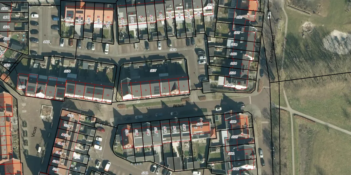 Het perceel waarop Actus 3 staat heeft een oppervlakte van 843 m². Dit is een groot perceel. De perceeloppervlakte wordt geregistreerd door het Kadaster. Gedetailleerde informatie over de maten van dit perceel kunt u vinden in het rapport Kadastrale kaart met maatvoering van Actus 3.