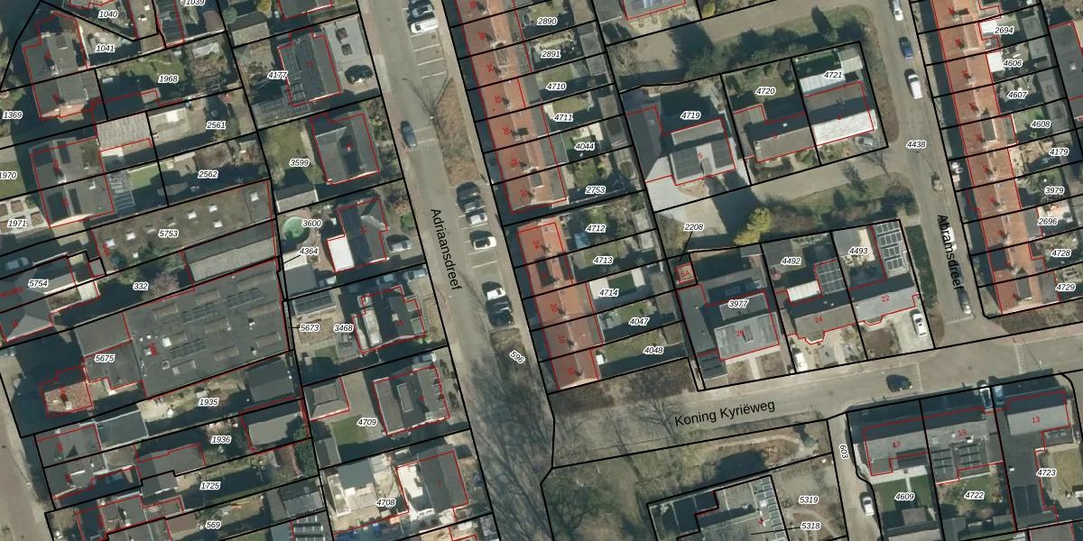 Gebruik de zoekbalk of klik op een perceel voor informatie over de adressen binnen dit perceel.