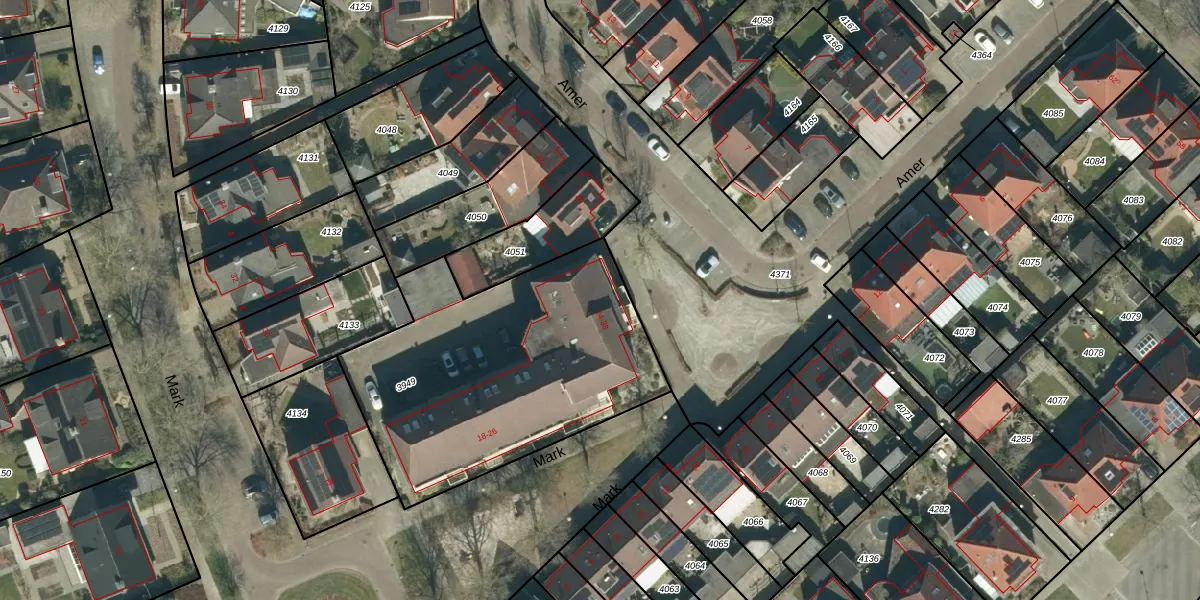 Het perceel waarop Amer 28 staat heeft een oppervlakte van 1429 m². Dit is een zeer groot perceel. De perceeloppervlakte wordt geregistreerd door het Kadaster. Gedetailleerde informatie over de maten van dit perceel kunt u vinden in het rapport Kadastrale kaart met maatvoering van Amer 28.